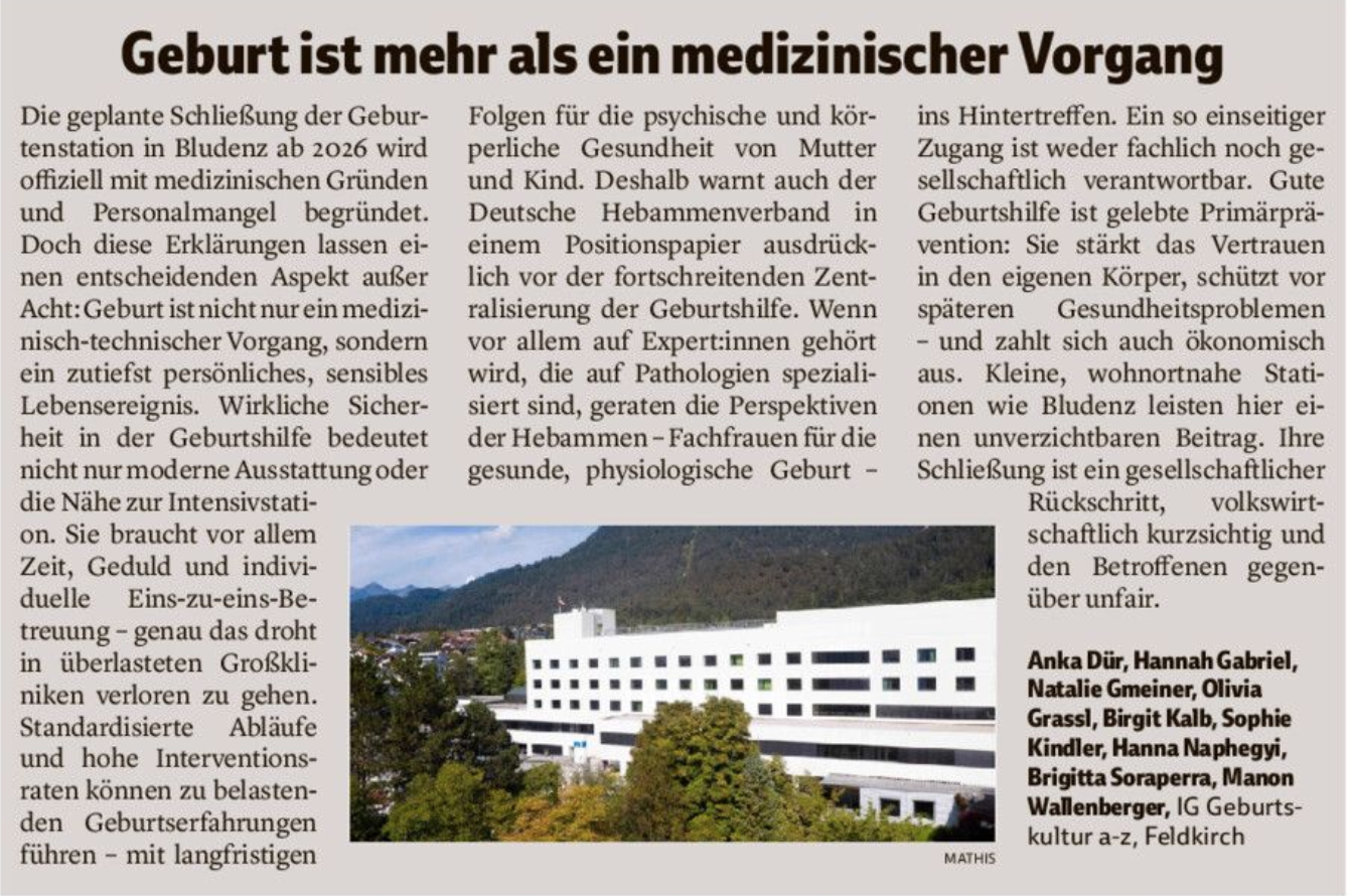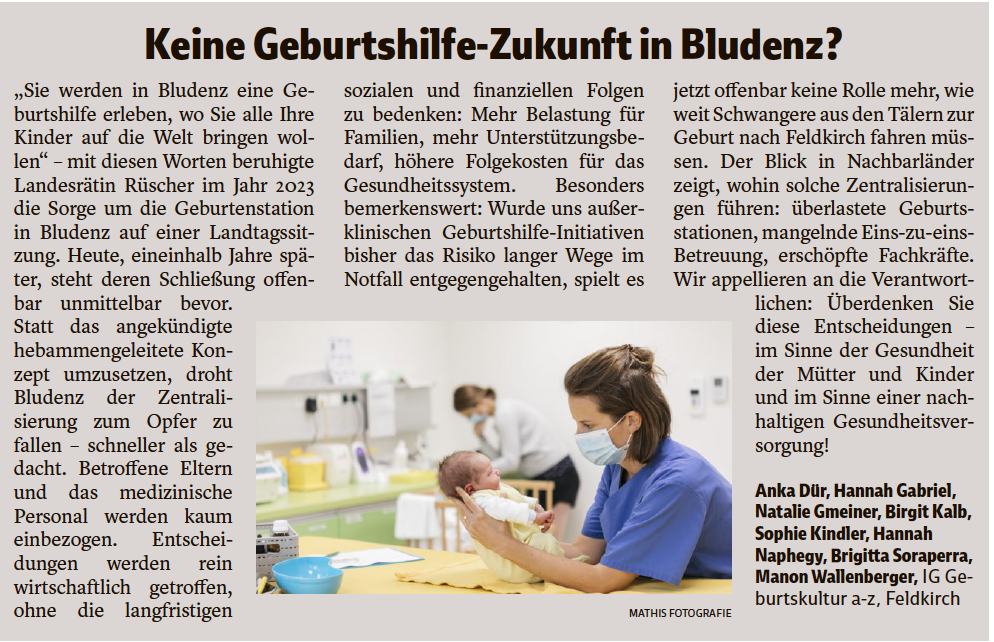 Vorarlberger Nachrichten, am 15. September 2025 anlässlich der verkündeten Schließung der Geburtenstation im LKH Bludenz.